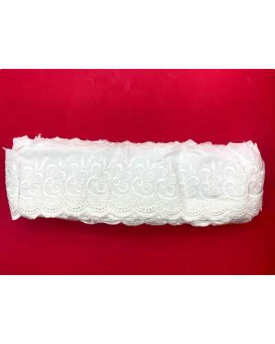 Pizzo Sangallo Bianco – Polycotone – Altezza 7 cm – Prezzo al Metro – Motivo Floreale Traforato
